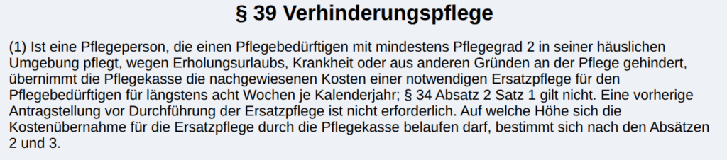 - Wenn die Pflegeperson jeden Sonntag morgen in die Kirche geht, ist sie an der Pflege gehindert.